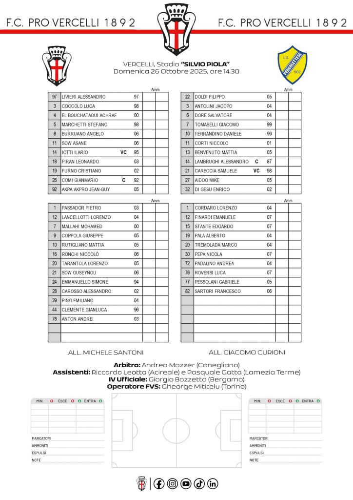 Pro vs Pergolettese, arbitro Andrea Mazzer della sezione di Conegliano, assistenti Riccardo Leotta della sezione di Acireale e Pasquale Gatto della sezione di Lamezia Terme.