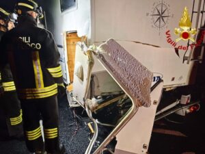 Incidente sulla bretella A26-A4: auto contro camper. Intervengono i vigili del fuoco