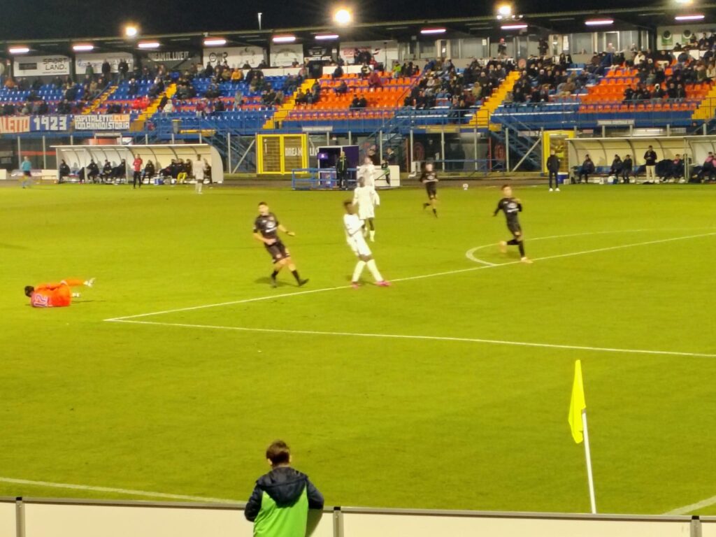 Nessun cambio. Al secondo minuto c’è un tocco di braccio in area Ospitaletto, chiamata FVS ad opera della Pro ma non è rigore. Ammonito Ousseynou per fallo su Panatti al 54’. La Pro non fornisce grandi elementi di riscossa. Ammonito al 61’ El Bouchataoui per gioco falloso. Al 63’ fuori Carosso e dentro Comi. Al 70’ ammonito Comi per gioco falloso ai danni di Sina in area Ospitaletto. La Pro sembra riprendere vigore, al 71’ calcio d’angolo di Iotti dalla sinistra offensiva, testa di Ousseynou, alto sulla traversa. Ammonito il portiere locale Sonzogni per perdita di tempo. Al 77’ Comi di testa, salvataggio clamoroso di Nessi sulla linea di porta. Al 78’ cambio nell’Ospitaletto, fuori Guarneri e dentro il centrocampista estone Tunjov. All’82’ l’Ospitaletto raddoppia, botta di Ievoli dalla corta distanza in area piccola respinge Livieri, la palla va sul palo, la riprende Messaggi che riprova a metter dentro, deviazione involontaria di Coccolo e gol, 2 a 0 per i padroni di casa. All’86’ fuori Bertoli e dentro Torri. Ammonito Akpa per fallo su Messaggi. Nel finale fuori Ronchi e Ousseynou e dentro Mallahi e Coppola. Ancora il tempo per il cambio tra Gobbi e Regazzetti. Cinque minuti di recupero e finisce così, due a zero per il redivivo Ospitaletto che nelle ultime 5 partite aveva raccolto 3 miseri punti, due sconfitte e tre pareggi. Una Pro scialba che ha affrontato con approccio piuttosto confuso l’aggueritissimo Ospitaletto. Si conferma lo scarsissimo rendimento dei Bianchi fuori dal Robbiano Piola.