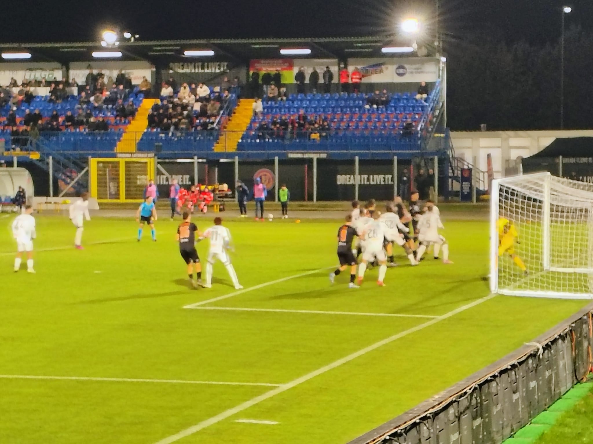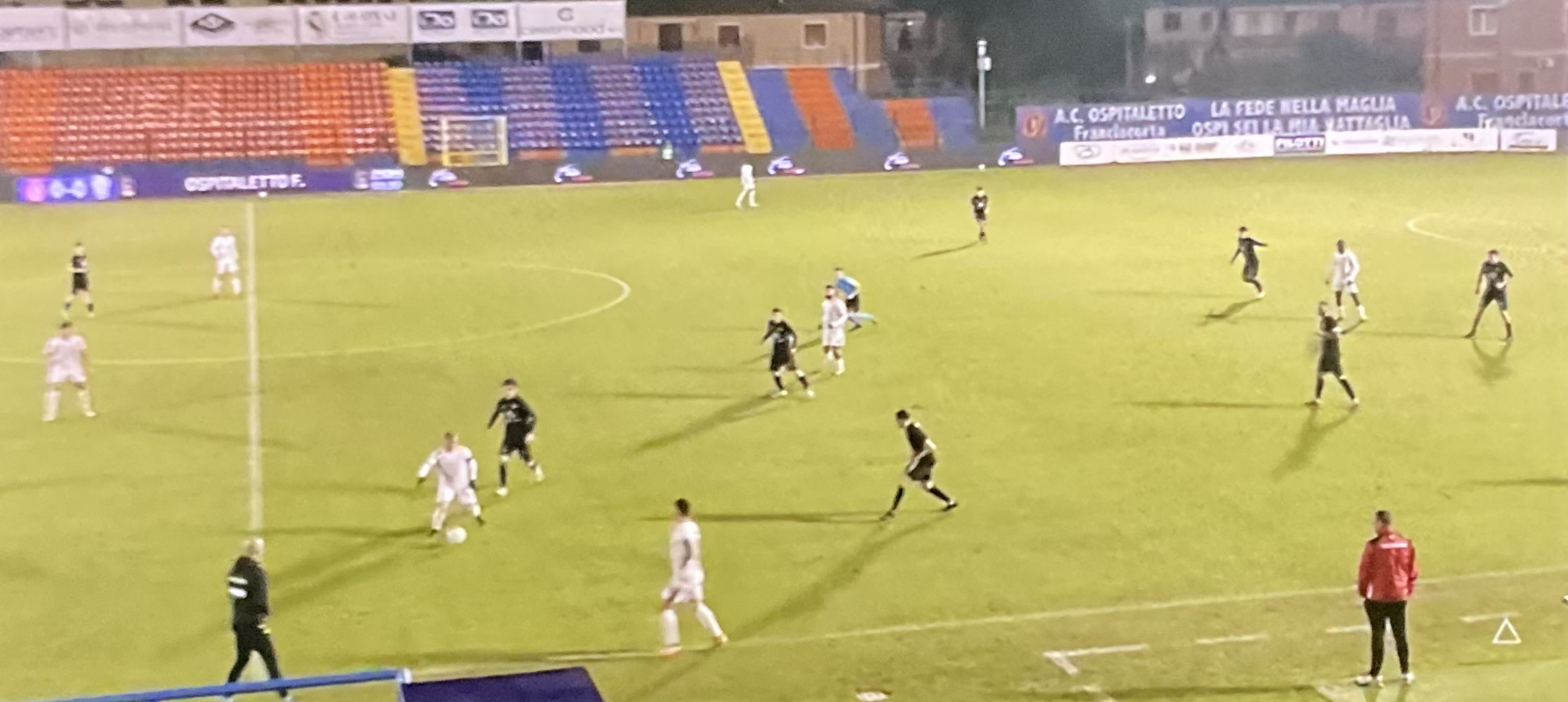 Nessun cambio. Al secondo minuto c’è un tocco di braccio in area Ospitaletto, chiamata FVS ad opera della Pro ma non è rigore. Ammonito Ousseynou per fallo su Panatti al 54’. La Pro non fornisce grandi elementi di riscossa. Ammonito al 61’ El Bouchataoui per gioco falloso. Al 63’ fuori Carosso e dentro Comi. Al 70’ ammonito Comi per gioco falloso ai danni di Sina in area Ospitaletto. La Pro sembra riprendere vigore, al 71’ calcio d’angolo di Iotti dalla sinistra offensiva, testa di Ousseynou, alto sulla traversa. Ammonito il portiere locale Sonzogni per perdita di tempo. Al 77’ Comi di testa, salvataggio clamoroso di Nessi sulla linea di porta. Al 78’ cambio nell’Ospitaletto, fuori Guarneri e dentro il centrocampista estone Tunjov. All’82’ l’Ospitaletto raddoppia, botta di Ievoli dalla corta distanza in area piccola respinge Livieri, la palla va sul palo, la riprende Messaggi che riprova a metter dentro, deviazione involontaria di Coccolo e gol, 2 a 0 per i padroni di casa. All’86’ fuori Bertoli e dentro Torri. Ammonito Akpa per fallo su Messaggi. Nel finale fuori Ronchi e Ousseynou e dentro Mallahi e Coppola. Ancora il tempo per il cambio tra Gobbi e Regazzetti. Cinque minuti di recupero e finisce così, due a zero per il redivivo Ospitaletto che nelle ultime 5 partite aveva raccolto 3 miseri punti, due sconfitte e tre pareggi. Una Pro scialba che ha affrontato con approccio piuttosto confuso l’aggueritissimo Ospitaletto. Si conferma lo scarsissimo rendimento dei Bianchi fuori dal Robbiano Piola.