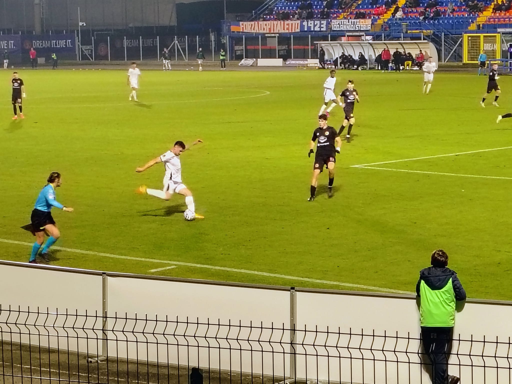 Terreno in erba naturale in ottime condizioni. 10 gradi. Spettatori 200 circa di cui 26 vercellesi nel settore ospiti. Grazie al Club Forza Pro ed all’amico Stefano Zanello per le bellissime immagini. Gara subito vibrante, nei primi dieci minuti al di là delle imprecisioni si creano occasioni da gol per entrambe le contendenti. All’11’ Ospitaletto in vantaggio con Guarneri che approfitta di un rimpallo in area piccola e come un rapace indisturbato si avventa sul pallone superando da distanza ravvicinatissima Livieri incolpevole. Fin da subito i padroni di casa seppur nei bassifondi della graduatoria hanno pressato con giocate in velocità e la Pro si è fatta sorprendere. Intorno al quarto d’ora i Leoni pressano di più, con Oussseynou si rendono pericolosi, fanno molto movimento ma la difesa dei padroni di casa fa buona guardia. Ed al 18’ su contropiede di Gobbi e Bertoli quest’ultimo viene atterrato da Livieri e per Cappai è rigore, Livieri ammonito. Ma all’FVS richiesto dalla Pro il rigore viene annullato, espulso un componente della panchina dell’Ospitaletto e viene cancellata l’ammonizione a Livieri. Pro in bambola, senza raccordo a centrocampo, Guarneri mette molto in difficoltà la difesa della Pro. Ospitaletto messo molto bene in campo da Quaresmini, Pro un po’ meno. Ospitaletto padrone del campo. Al 43’ ammonito Gualandris per gioco falloso su Coccolo. Quattro minuti di recupero. Ed il primo tempo finisce uno a zero per l’Ospitaletto, Pro molto deludente, speriamo nella ripresa. Può accadere che talvolta chi Vi scrive sia giudicato troppo severo ma Vi assicuro che la Pro, questa Pro nel primo tempo contro l’Ospitaletto è stata davvero ben poca cosa.