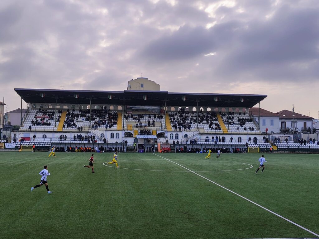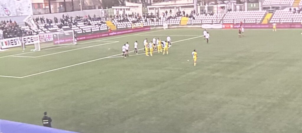 Arzignano che ad inizio novembre ha esonerato Giuseppe Bianchini ed assunto Daniele Di Donato, in grado di risollevare le sorti della squadra veneta. Prima della gara profluvio di inni, da quello storico a quello più recente, per caricare la squadra e gli Innamorati. Dopo 46 secondi l’ Arzignano è in vantaggio, gol di Moretti che raccoglie in solitudine e a due passi dalla porta la respinta di Livieri sul tiro di Lakti lasciato colpevolmente concludere dopo una corsa sulla fascia destra offensiva tra le praterie deserte. Pessimo inizio per la Pro che cerca di rimediare fin da subito. L’Arzignano difende con mestiere tra falli tattici e coperture, la Pro fatica, lenta e prevedibile. E non succede praticamente nulla per venti minuti abbondanti, tranne che il cambio dell’Arzignano con l’ingresso di Castegnaro al 22’ al posto dell’infortunato Bianchi. Si alza qualche fischio di disapprovazione per i Leoni, in serie negativa da quattro giornate. Al 27’ Mattioli dal limite prova la via della rete su una respinta corta della difesa, di mancino e palla sul fondo di poco. Al 28’ l’Arzignano raddoppia con Bernardi che indovina il pallonetto da interno area su assist di Lakti che ancora una volta indisturbato aveva fatto una bella progressione sulla destra, zero a due, Pro al tappeto. Check FVS al 33’ per un intervento in area Pro, nessun rigore per l’intervento casuale di Clemente su Minesso. Al 36’ bellissima apertura di Sow per Rutigliano che non trova il tempo per la conclusione e si fa respingere la conclusione dalla difesa ospite. Il primo tempo finisce mestamente sul due a zero per l’Arzignano, zero tiri in porta per la Pro nel primo tempo, pessimo avvio d’inverno per i Leoni.