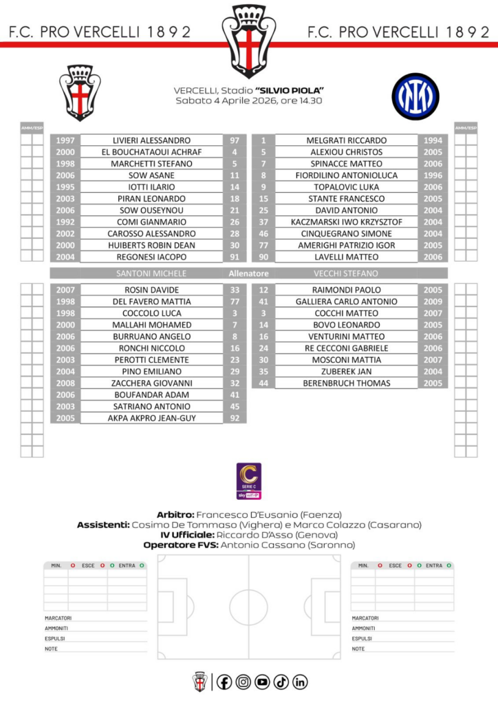 Pro vs Inter Under 23, arbitro Francesco D’Eusanio della sezione di Faenza, assistenti Cosimo De Tommaso di Voghera e Marco Colazzo di Casarano, Quarto uomo Riccardo Dasso di Genova, operatore FVS Alessandro Cassano di Saronno. Assenti gli Ultras in Curva Ovest per la protesta contro le squadre B di serie A che snaturano il campionato di serie C. Naturalmente deserto il settore ospiti. Inter che proviene da tre sconfitte di fila. Grazie a Gil ed a Stefano Zanello per le bellissime foto. Le formazioni 🔽