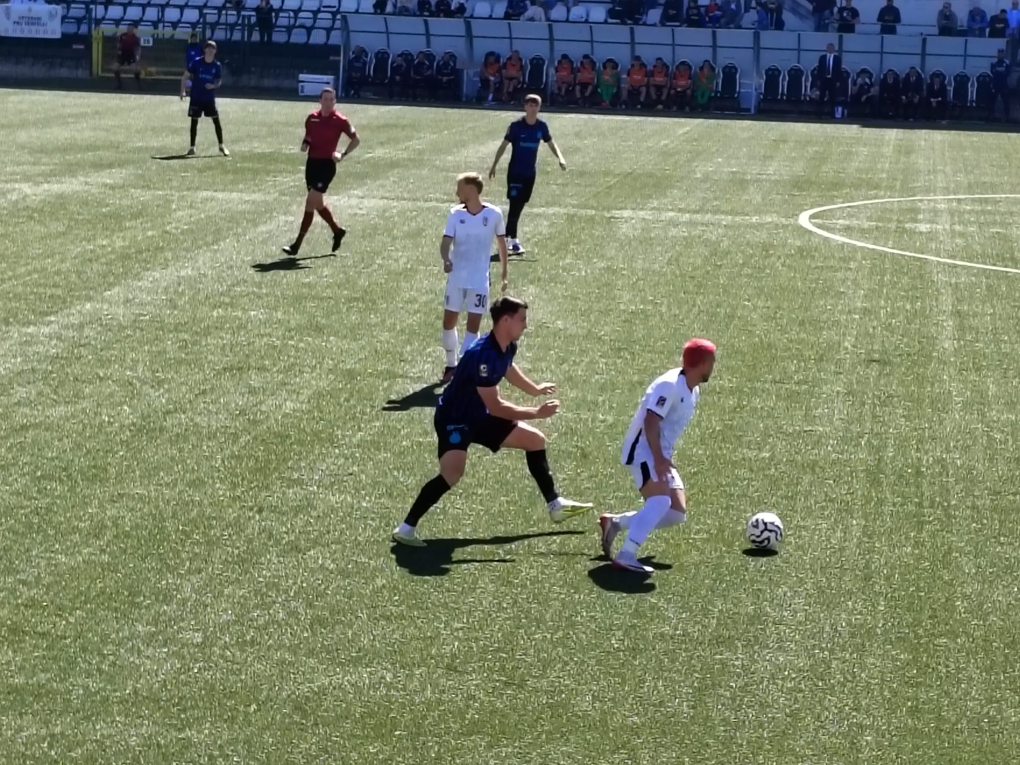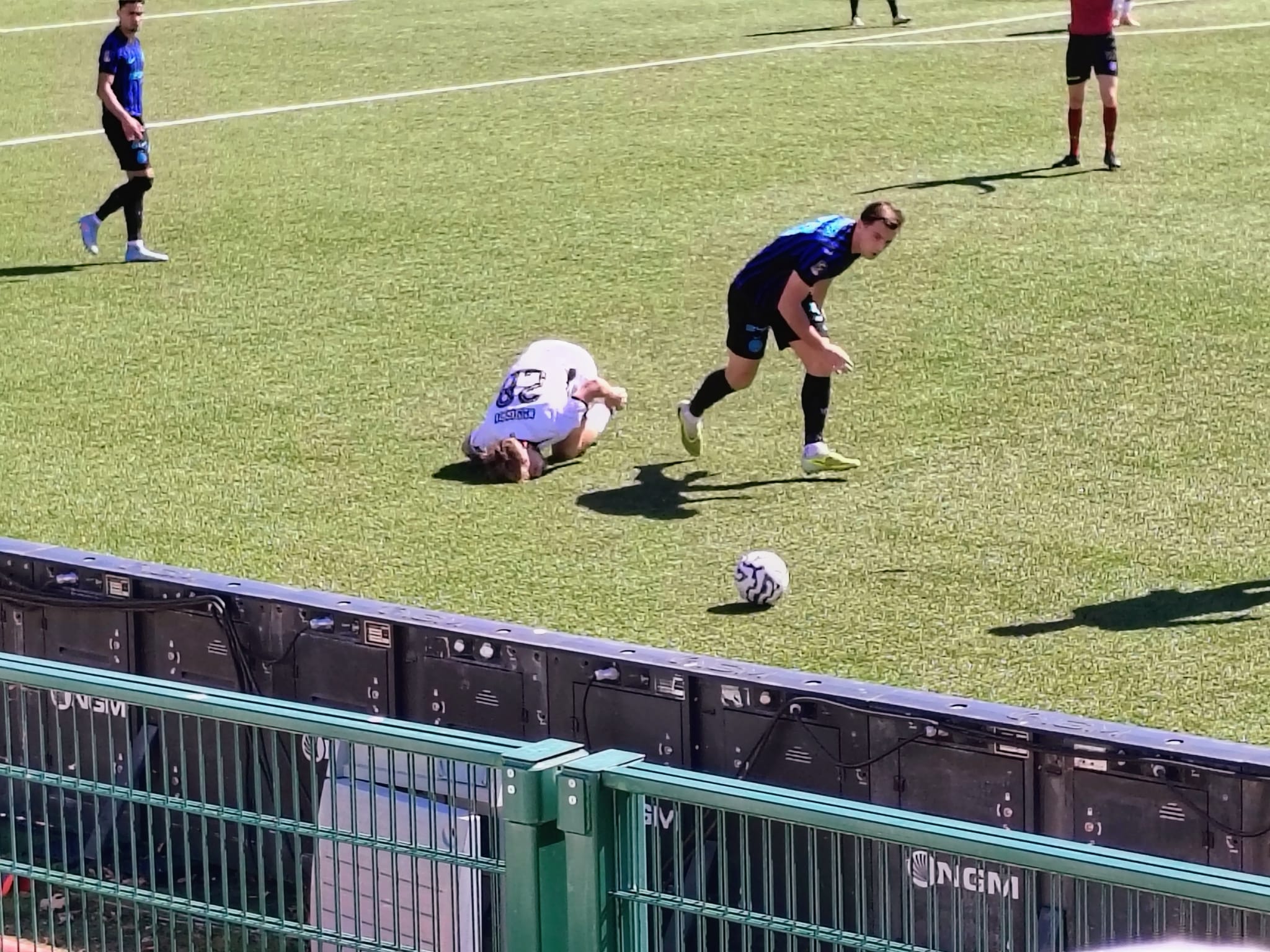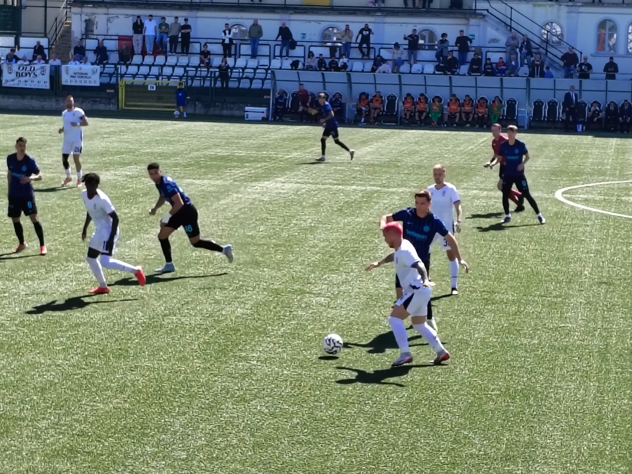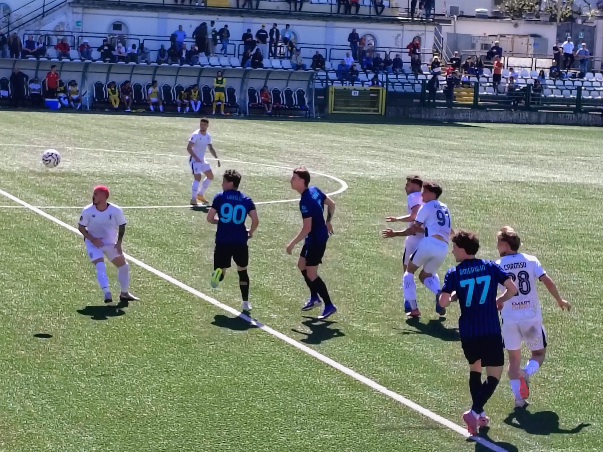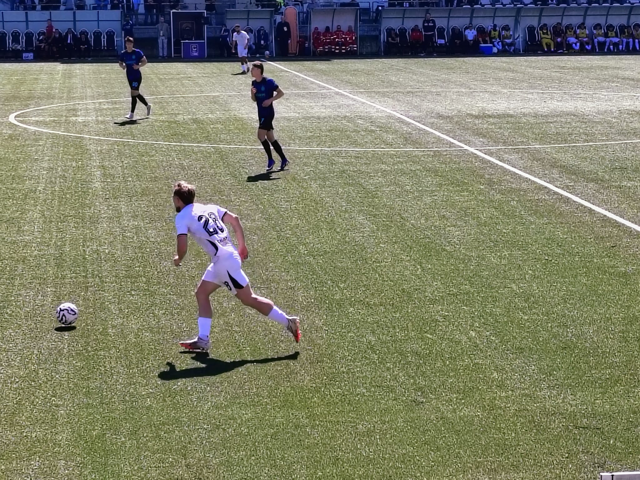 Al 3’ Ousseynou suggerisce in area per Marchetti che arriva in corsa ma non riesce a spingerla verso la porta. Partita subito veloce, vediamo quanto dura questo ritmo. Al 10’ ammonito El Bouchataoui. Inter che passa in vantaggio al 14’ con Amerighi che scatta in area, non viene contrato e lascia partire – da posizione decentrata sulla destra – un bolide che sbatte sulla traversa e s’insacca. Al 20’ fuori Marchetti per infortunio e dentro Ronchi. Pro piatta ed Inter ancora in pressing. Al 36’ al termine di un’azione insistita ci prova Carosso ma il suo tiro termina a lato. Al 41’ l’Inter raddoppia da Corner, David mette in mezzo dalla bandierina di destra offensiva, testa di Alexiou, gol. Ancora Amerighi dalla stessa posizione del primo gol ci riprova, para Livieri. Il primo tempo finisce così, due a zero per l’Inter. Alla Pro basta la prestazione più del risultato.