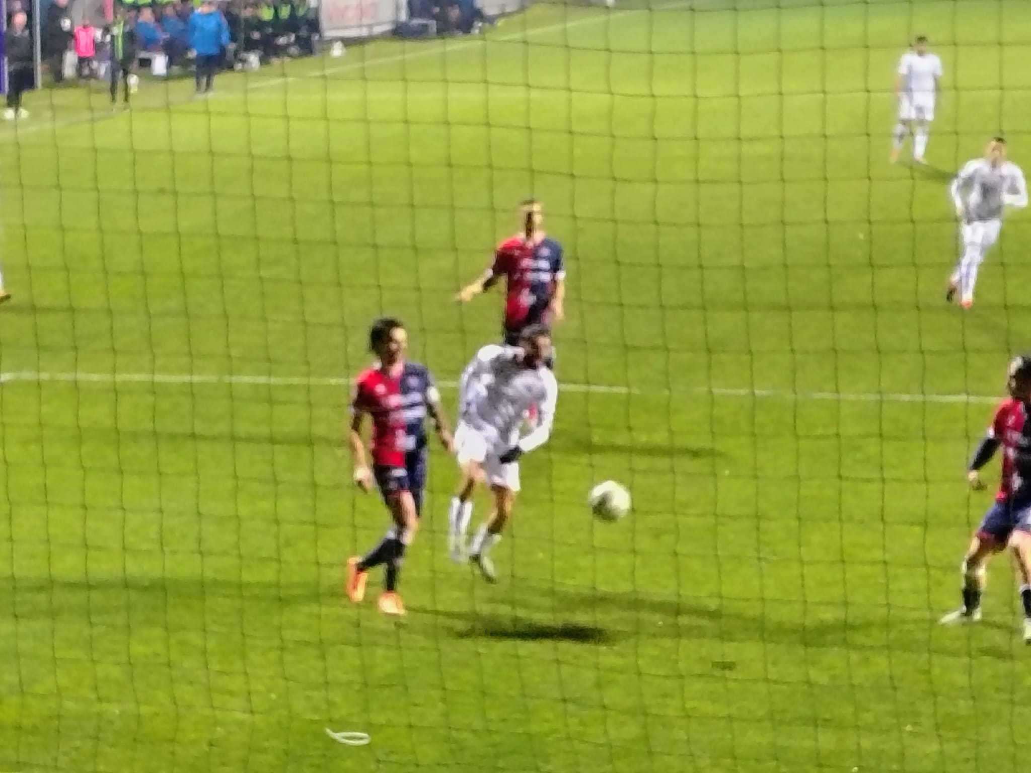 Serata nuvolosa e umida, 8 gradi. Terreno in erba naturale in buone condizioni, insidioso per la pioggia caduta nel pomeriggio. Spettatori 250 circa di cui 26 vercellesi nel settore ospiti. Fuori Livieri ed Huiberts per infortunio, esordio di Del Favero, ritorna Rutigliano dal primo minuto. Primo tentativo verso la porta avversaria è di Burruano che ci prova con uno spiovente di 25 metri, alto di poco sulla traversa. E al terzo minuto la Virtus Verona va in vantaggio con Cernigoi che dal limite si libera di Clemente e di sinistro buca Del Favero. La Pro tenta di reagire fin da subito ma è durissima. Ed all’ottavo minuto Cernigoi sfiora la doppietta con una rovesciata volante in area su cross dalla destra offensiva. La Virtus Verona in questo campionato non ha mai vinto tra le mura amiche. Ma i padroni di casa continuano a macinare gioco, la Pro fatica. Al 14’ ancora Cernigoi superstar, dalla distanza breve Del Favero respinge, un minuto dopo Fabbro segna da due passi ma è in fuorigioco. Pro in bambola pesante. Ammonito al 23’ Bassi per fallo su Comi. Alla mezz’ora Rutigliano tenta il tiro da fuori , deviato da un difensore, la palla si stampa sulla traversa. Al 35’ Fabbro di mancino tenta la botta, centrale, Del Favero alza in corner. Ammonito al 40’ Sow per gioco falloso. Al 44’ rigore per la Virtus, braccio di Burruano su carambola in area Pro. La Pro chiede l’FVS ed il rigore viene annullato. Tre minuti di recupero, il primo tempo finisce uno a zero per la Virtus.